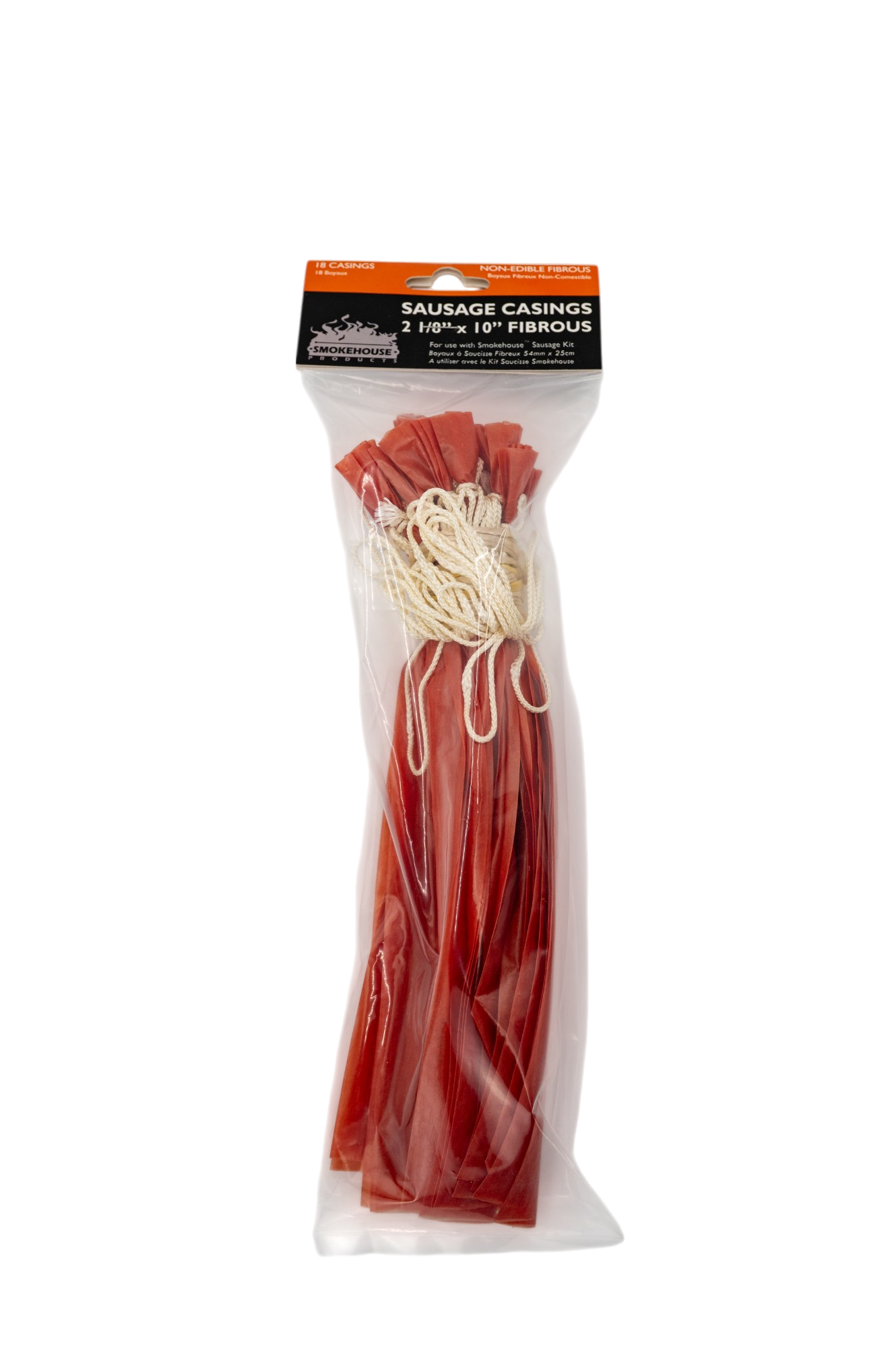 18 10-inch long 52MM Collagen Casings allow smoke to penetrate sausage.